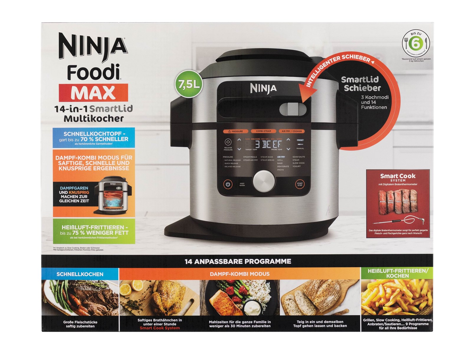 • 3-i-1 SmartLid-teknologi – Skift nemt mellem trykkogning, airfry og kombidamp uden at løfte låget