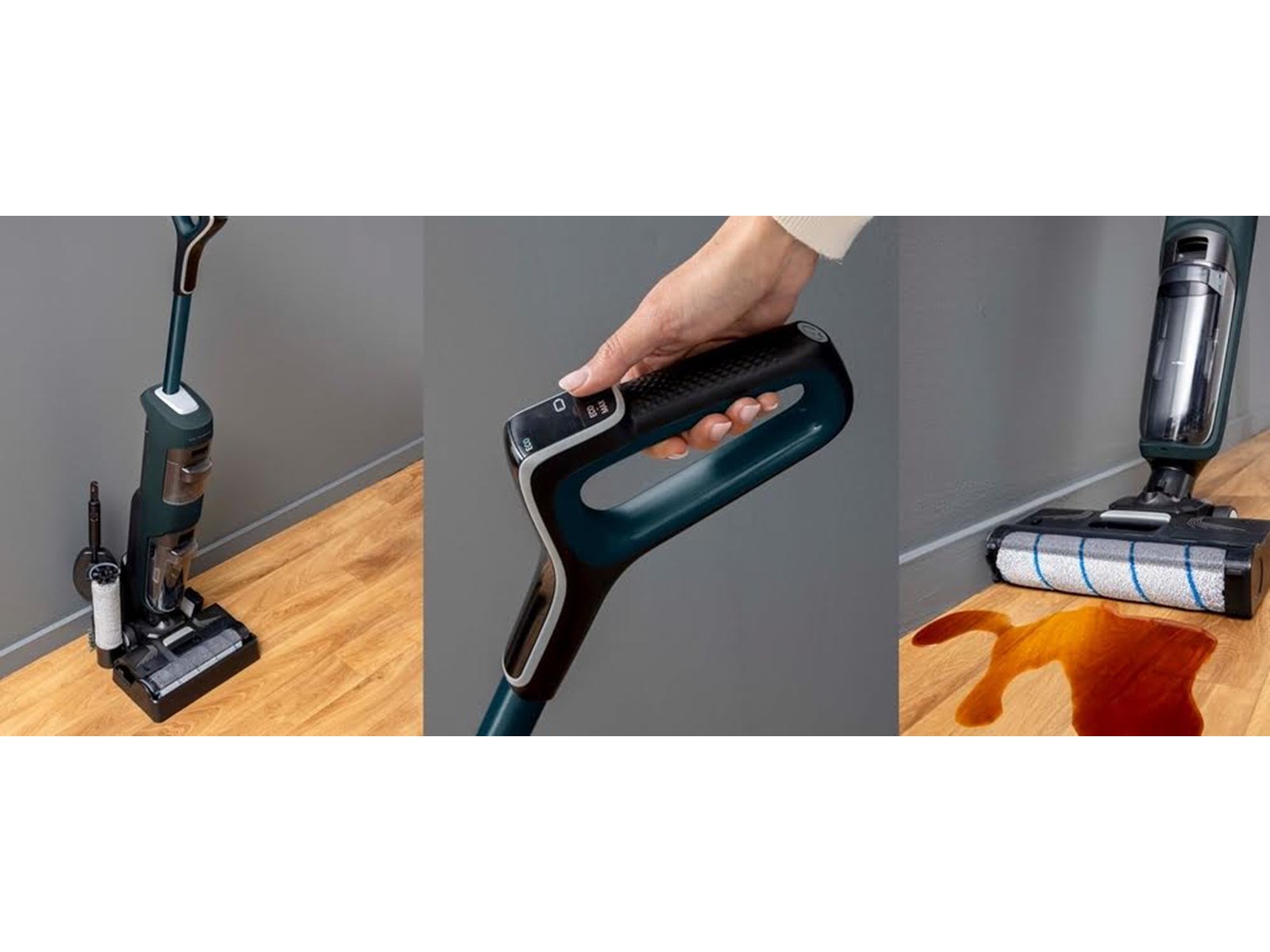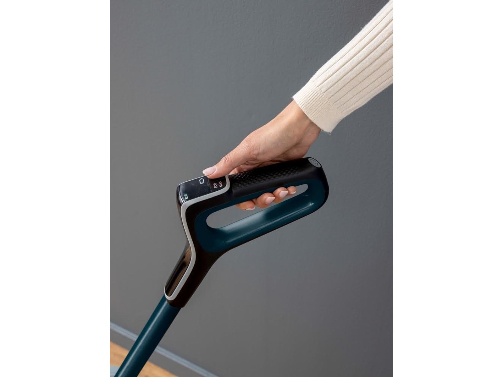 Det enkle LED-panel på håndtaget giver dig information i realtid om batteristatus, rengøringstilstand og niveauet i vandtanken, så du altid har fuld kontrol over rengøringen.