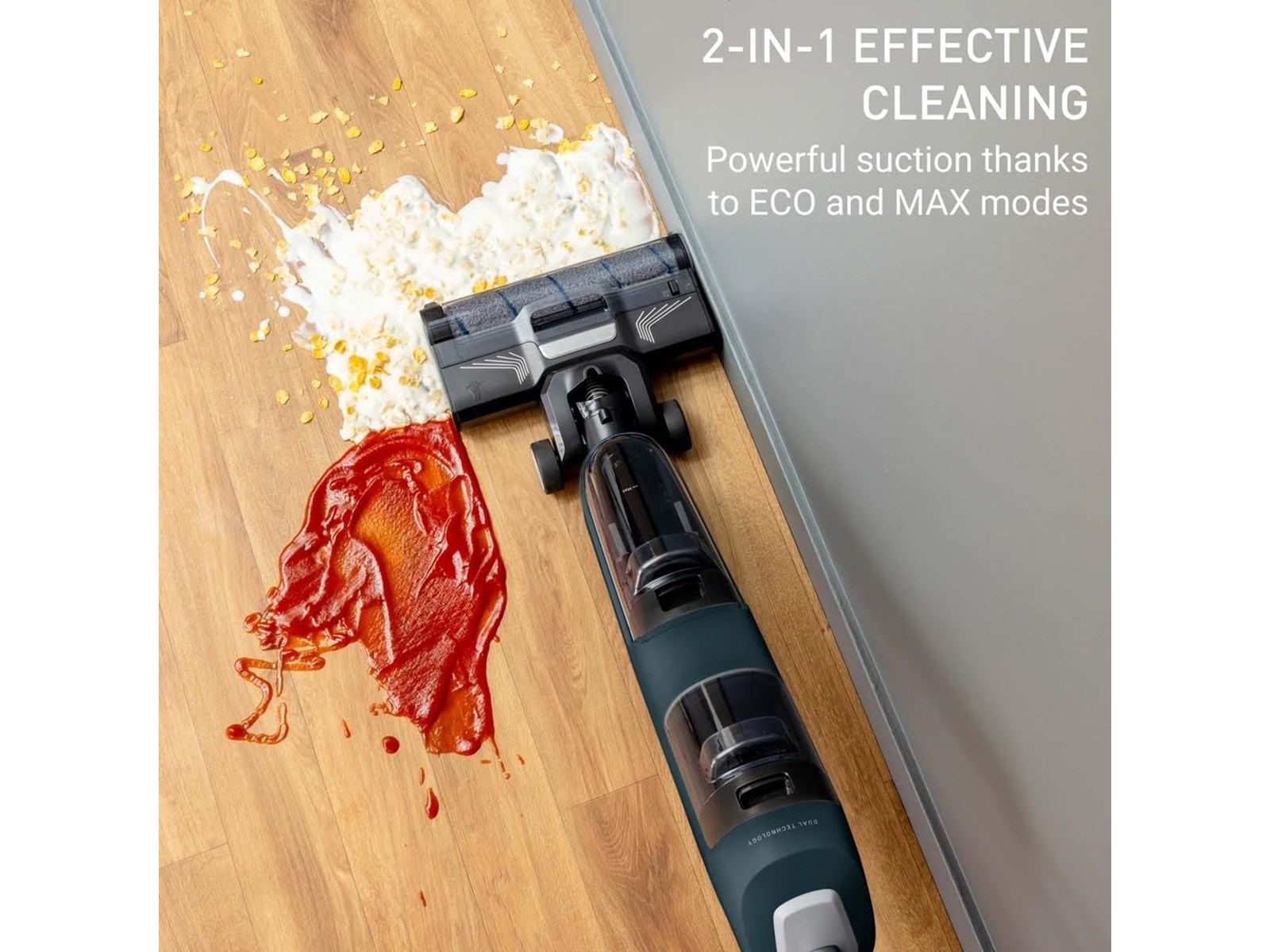 Med ECO- og MAX-indstillingerne kan du nemt håndtere både fast og flydende affald og sikre, at dine gulve bliver skinnende rene på en hurtigere og mere effektiv måde. Uanset om det gælder spildt væske eller støv, rengør Tefal X-Clean 2 grundigt og præcist.