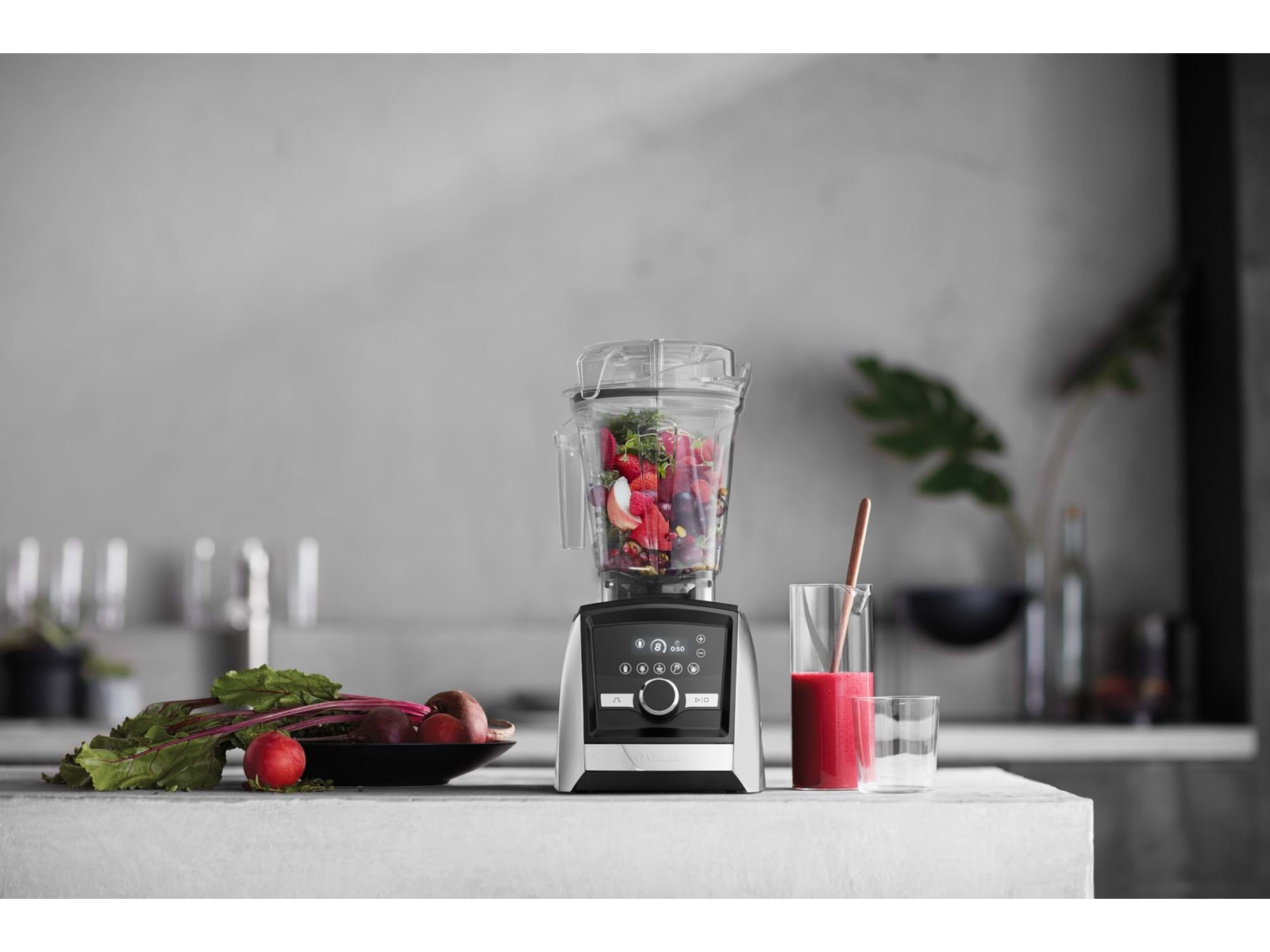 Vitamix Ascent A3500i topmodellen fra Vitamix. A3500i kommer i børstet stål og har 5 programmer (Smoothies, Suppe, Is, Dips/Puré og Rengøring). Blenderen tilpasser automatisk programmerne i tid og hastighed til den påsatte beholder. Der er indbygget trådløs tilslutning, der gør det muligt for Vitamix Ascent blendere at udvikle